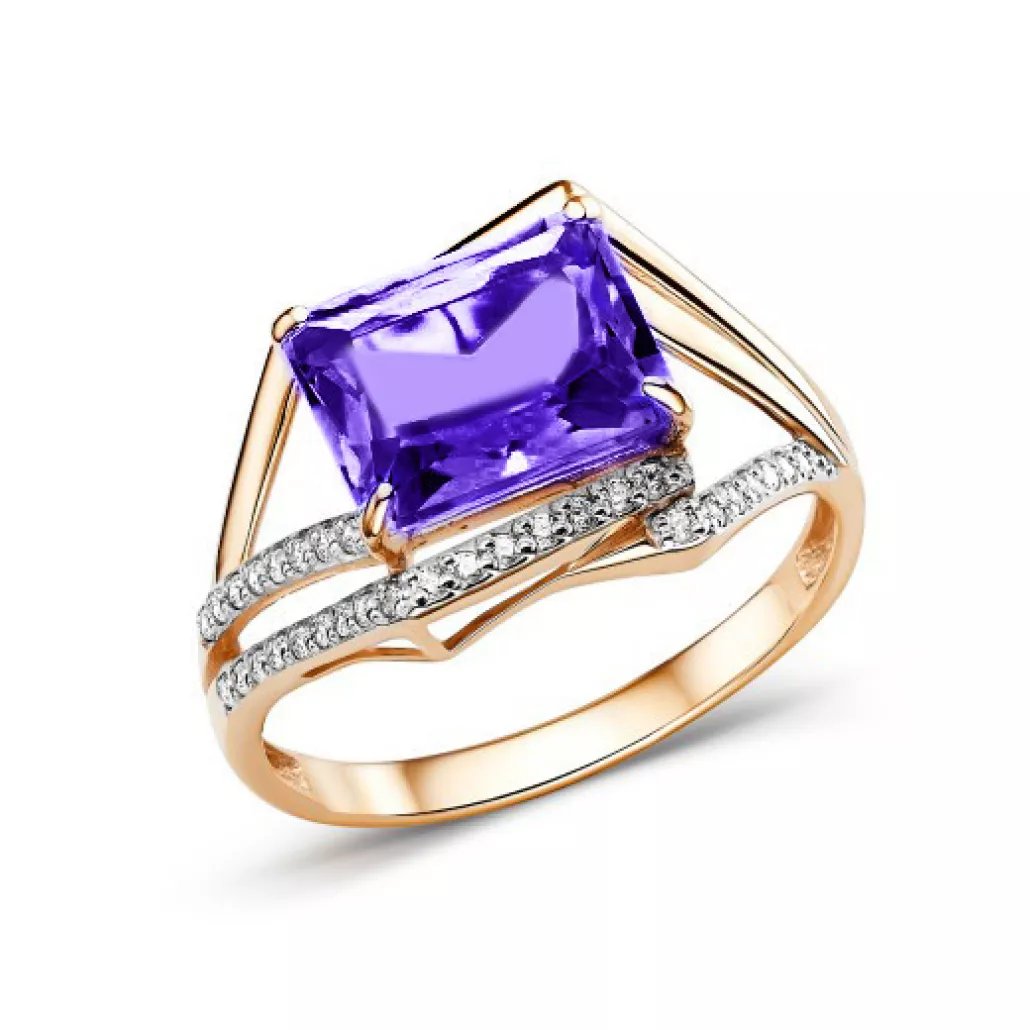 - Кольцо с аметистом и фианитом из золота