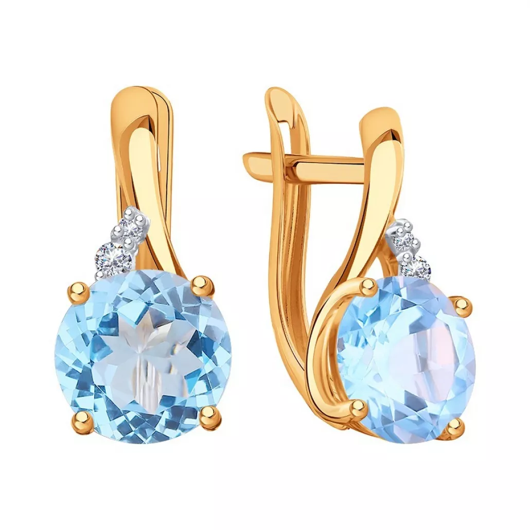 Серьги с топазом и фианитом из золота Артикул: Т14302Е303